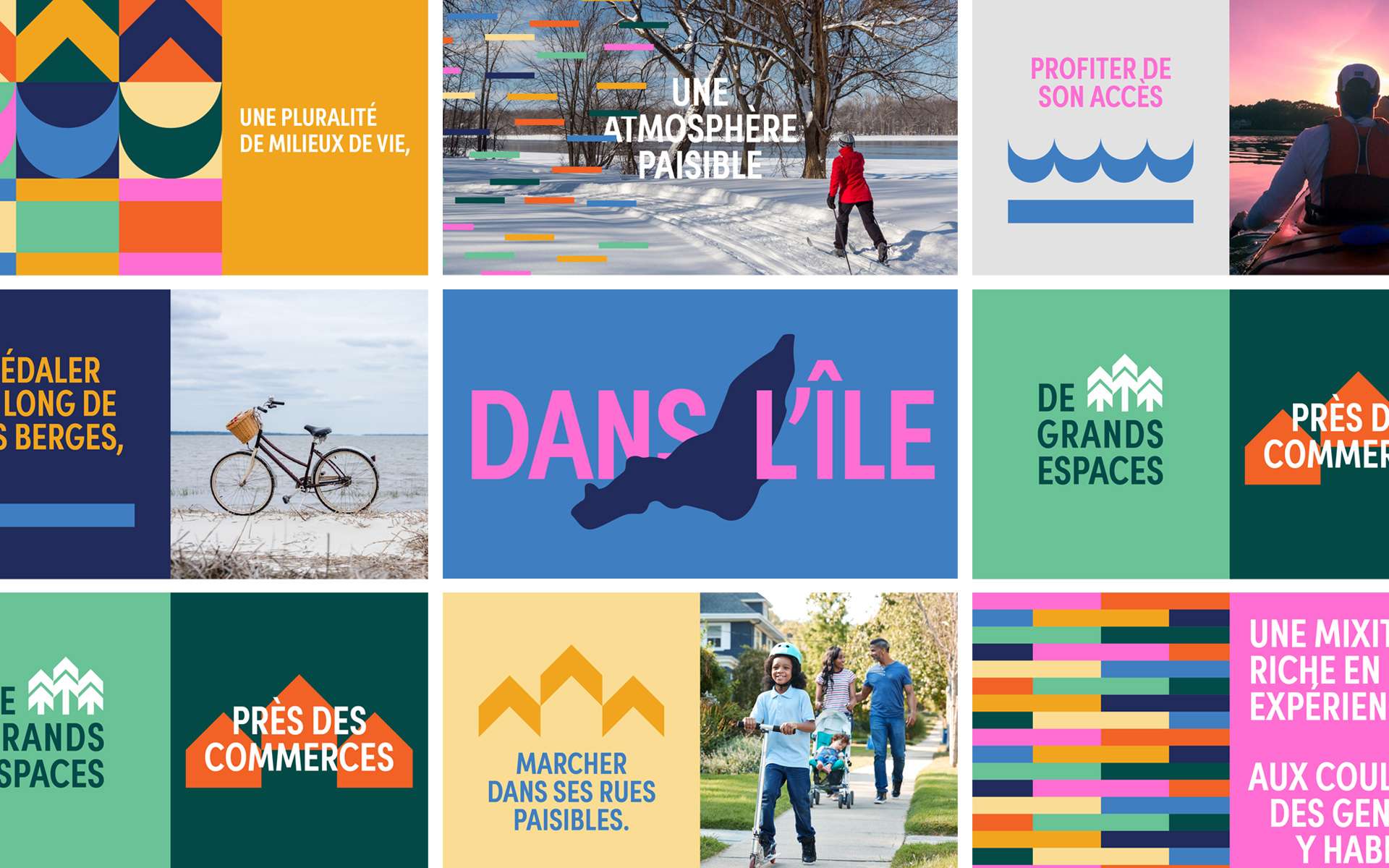 L’identité conçue part de l’existant : elle s’ancre dans les armoiries de l’arrondissement, symboles forts qui font l’unicité du lieu. Nous avons aussi fait ressortir la dimension humaine unique marquée par les multiples visages et l’esprit communautaire palpable présents dans l’arrondissement pour susciter un sentiment d’appartenance et de fierté.